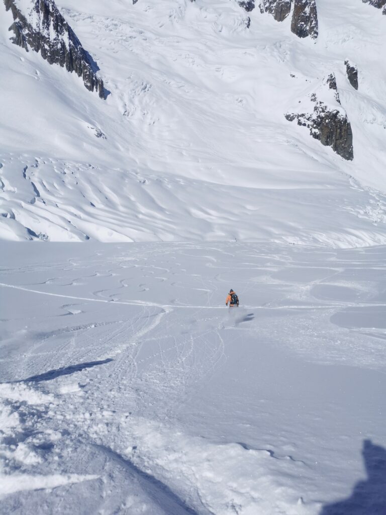 Dictated as always by the weather, my 20th winter in Chamonix was one of extremes. Encouraging early snow, heavy rain right to the top as a prank Christmas present, some snow came back in January but it didn’t last, characterised by a warm sunny period from mid January right through to March put paid to any hopes of any more good low-altitude riding. It’s the earliest we ever got our town bikes out. In spring we had to get up high, tour up even higher or be prepared to walk down in the mud and grass…which, as it turned out, we were. Capped off by an adventure into the West Couloir, overall the season wasn’t too bad, working in the sunshine and riding when there was any hint of snow.